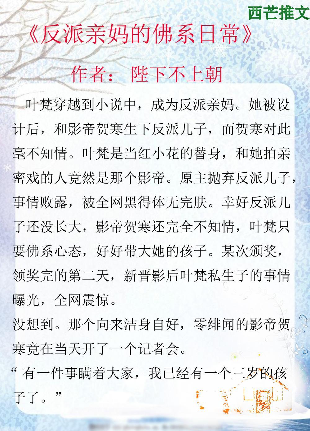 最近有看到好看的娱乐圈宝宝的宠文,那么西芒当然是迫不及待的想要跟你们分享啦,看到文中那么可爱软萌的包子,真的是心情都变好了呢,而且我的推文又是有甜甜的嘛,所以也希望大家每一天都开开心心的哦,西芒前面也是有给大家推过这种有宝宝的宠文,但是有好文嘛,所以就来推啦,今天的推文,看看你们有没有看过吧!