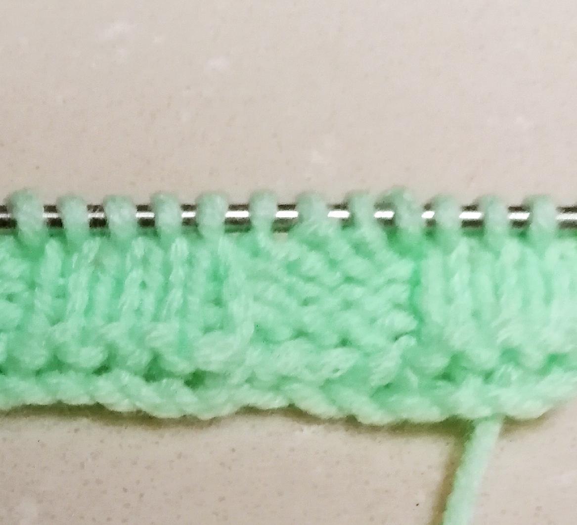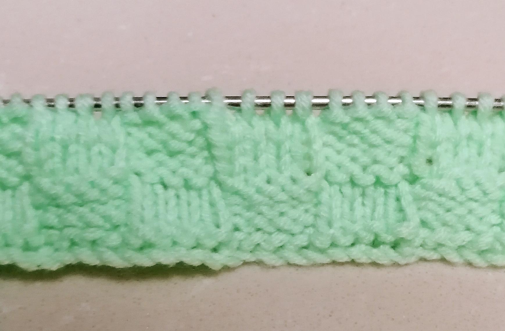 如果看图解织会很累,还容易出错,下针是辫子图样,上针是凹凸图样,对应着织就可以。