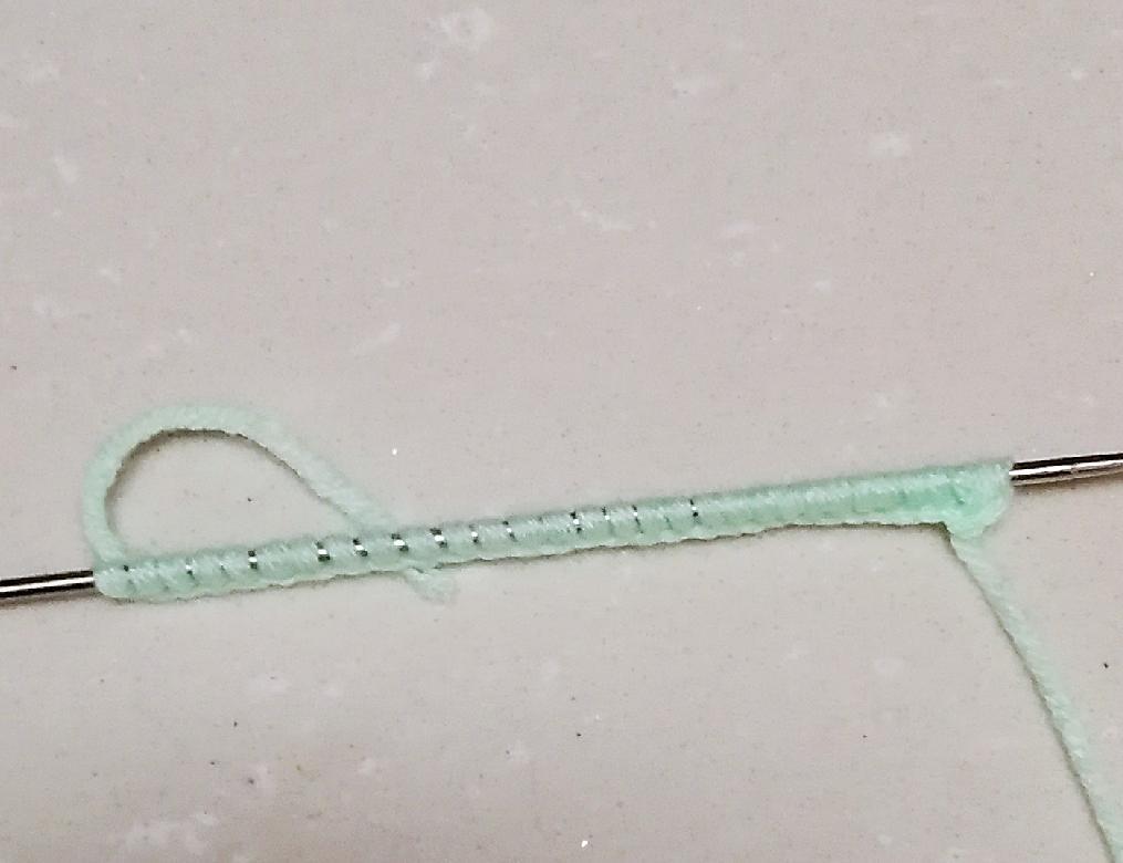 把线绕上面,然后把线带出来挂到针上,我起了30针。