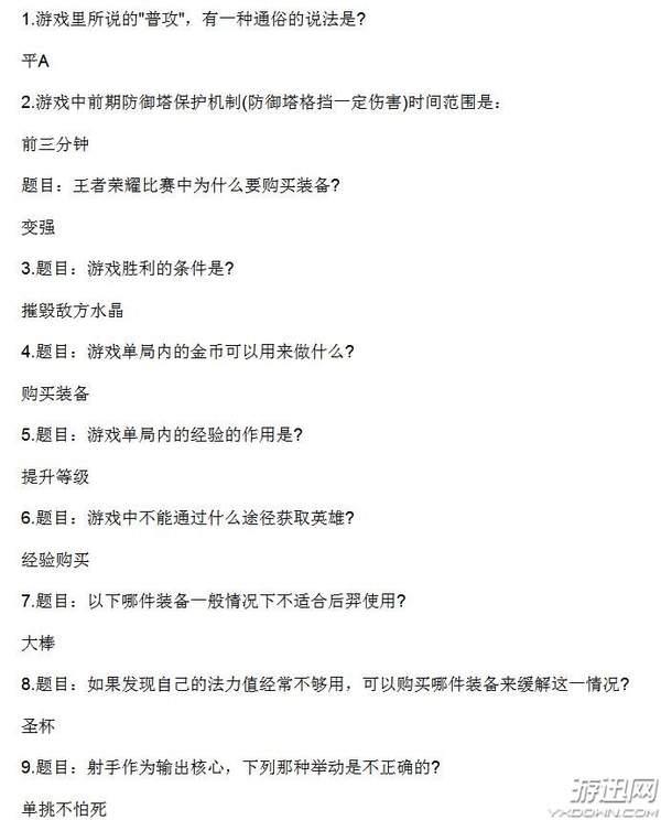 王者荣耀夫子的试炼答案汇总: