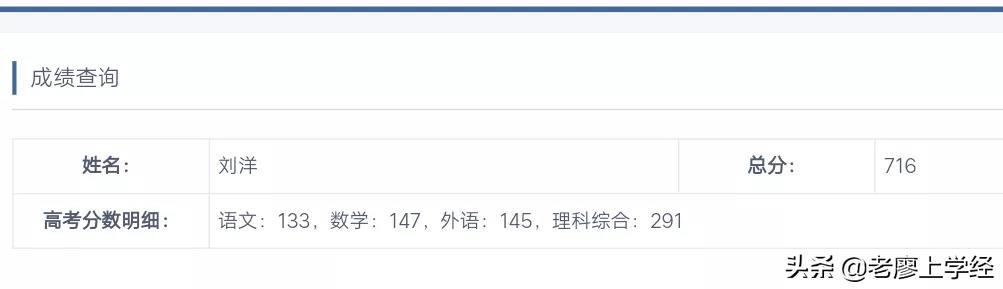 这个分数,是来自于广州市第六中学的刘洋,他初高中6年都在广六,而且中考成绩达到了766分()满分810分,只扣了44分),是一路领先的学霸。