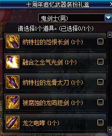 以鬼剑士为例,十周年武器装扮自选礼盒