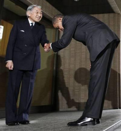 奥巴马就更为尊敬了,直接以接近90度鞠躬低头方式,来表达礼貌。日本天皇脸上总是笑的,很和蔼可亲。
