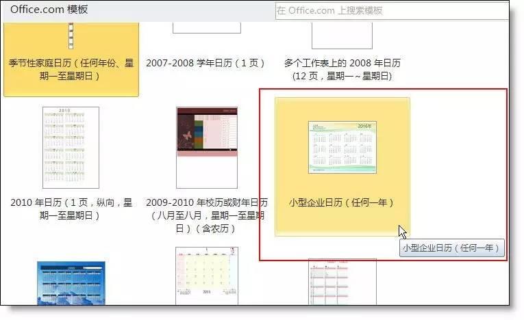 挑选一个自已喜欢的日历模板,如小企业日历清新淡雅,比较好看。点击后会从微软网站上下载。