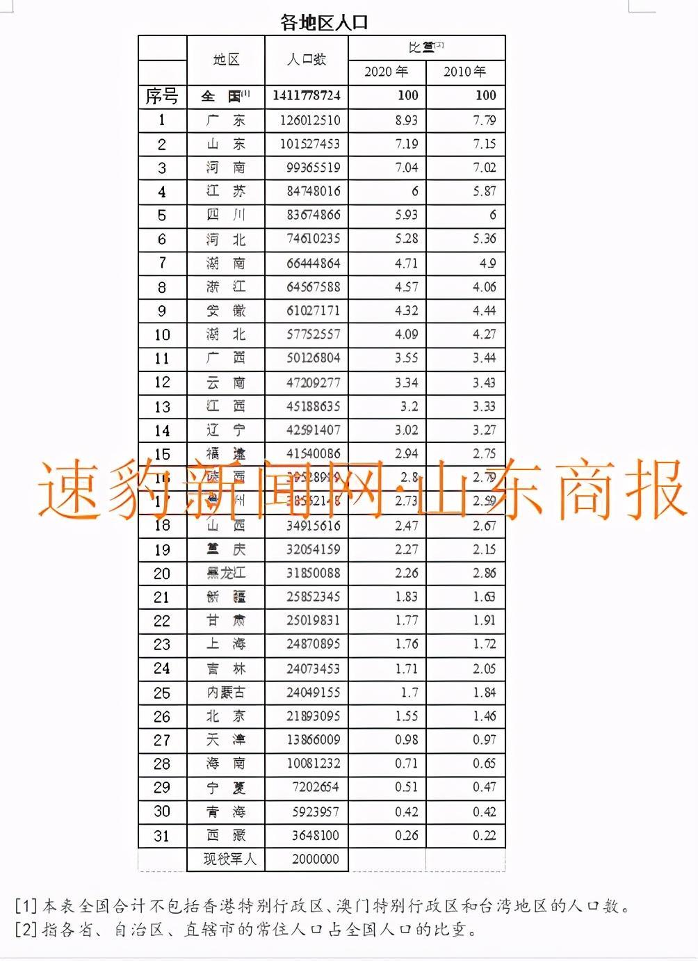 山东总人口101527453人!居全国第二