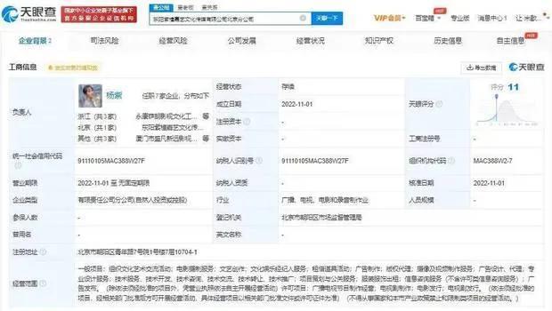 杨紫名下公司成立北京分公司 此前关联个人工作室