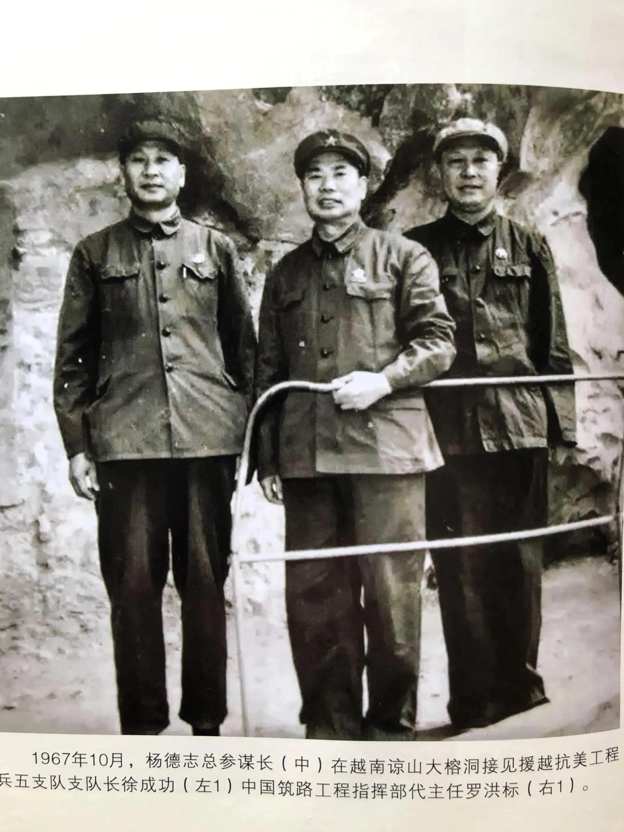 杨德志总参谋长和支队长徐成功,工程部主任罗洪标交谈。