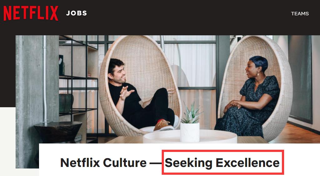 Netflix的文化是:“追求卓越(Seeking Excellence)”(Netflix官网),公司立志追求卓越,那么必须要有追求卓越的员工。因此,在Netflix,“仅仅做到称职的员工,也要拿钱走人”(《Netflix Culture中英对照版》)。