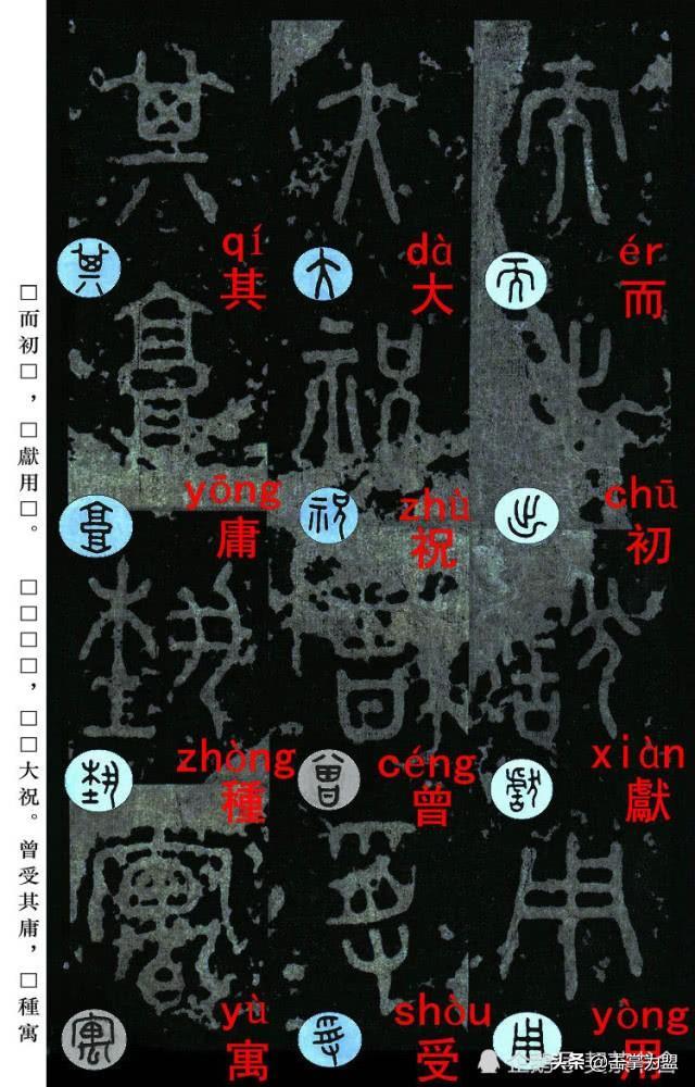 □而初□,□献用□。□□□□,□□大祝。曾受其庸□□種寓逢,中囿孔□,□鹿□□。吾其□□,□緟緟大□□□□□□求有□□□□□□□是。