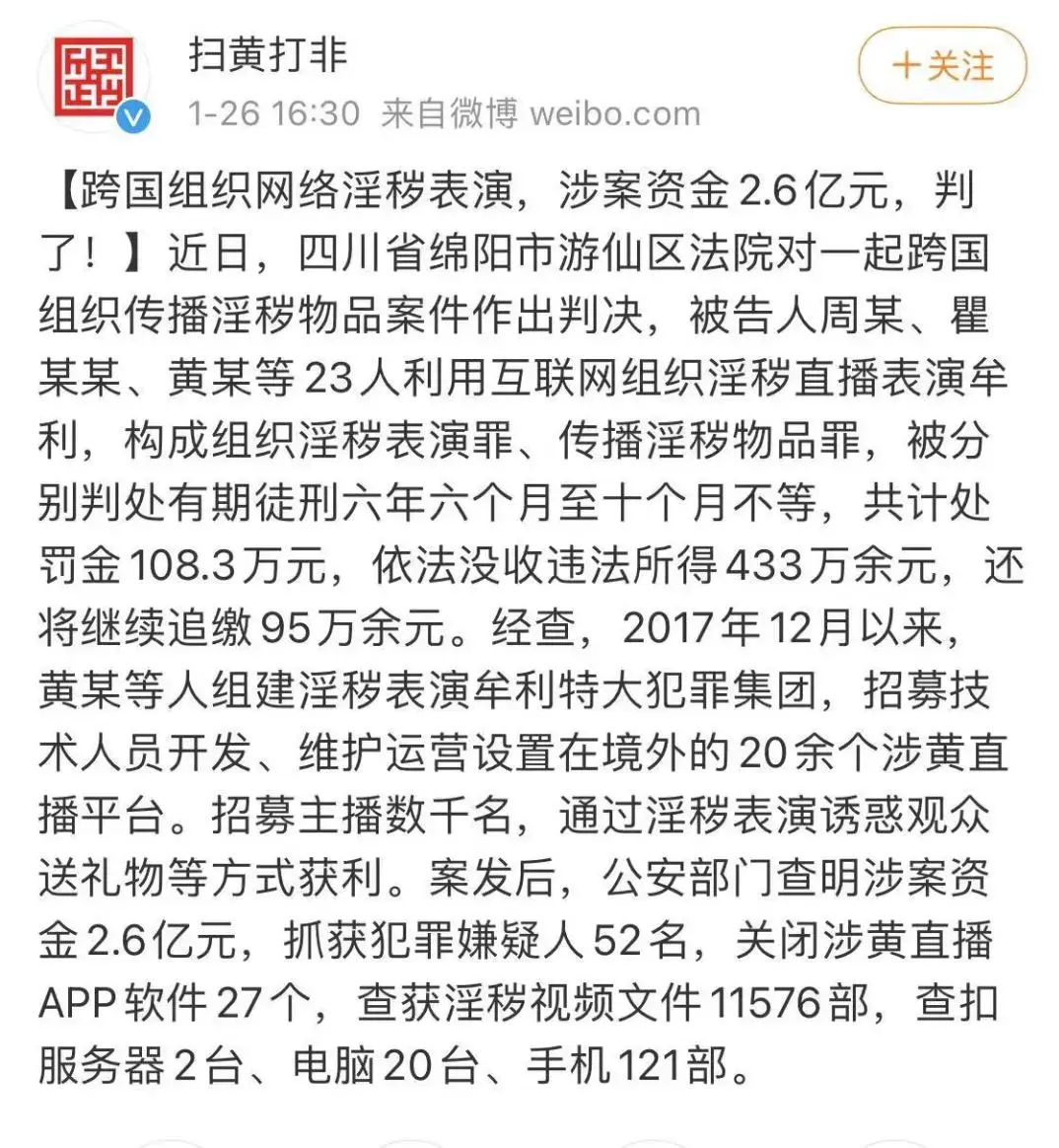 招募技术团队开发色情APP和网站,注册会员逾百万人且有未成年用户,在境外资源服务器存储淫秽视频10万余部……2020年12月23日,上海警方抽调数百名警力,兵分七路,在全国多地开展集中收网行动,一举捣毁了一个通过运营多个色情APP和网站、传播大量淫秽视频非法牟利的犯罪团伙。