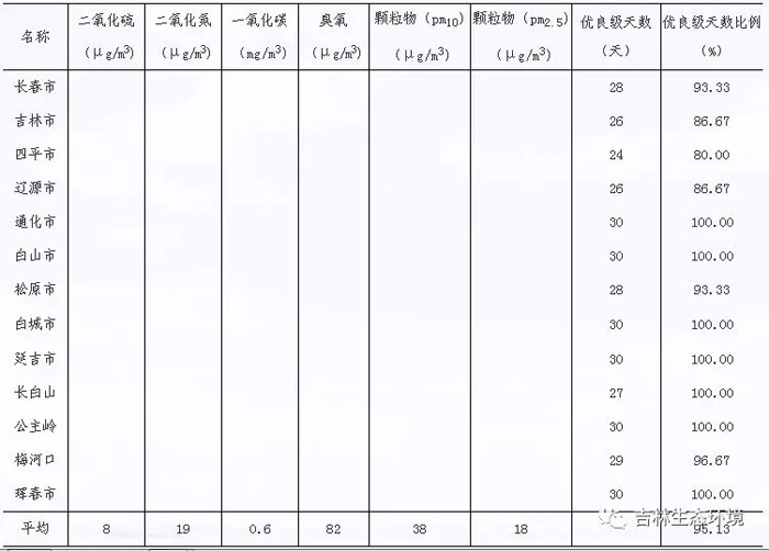 吉林省9月份空气质量出炉,7地优良级天数比例为100%