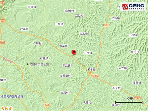 四川成都市简阳市发生3.0级地震