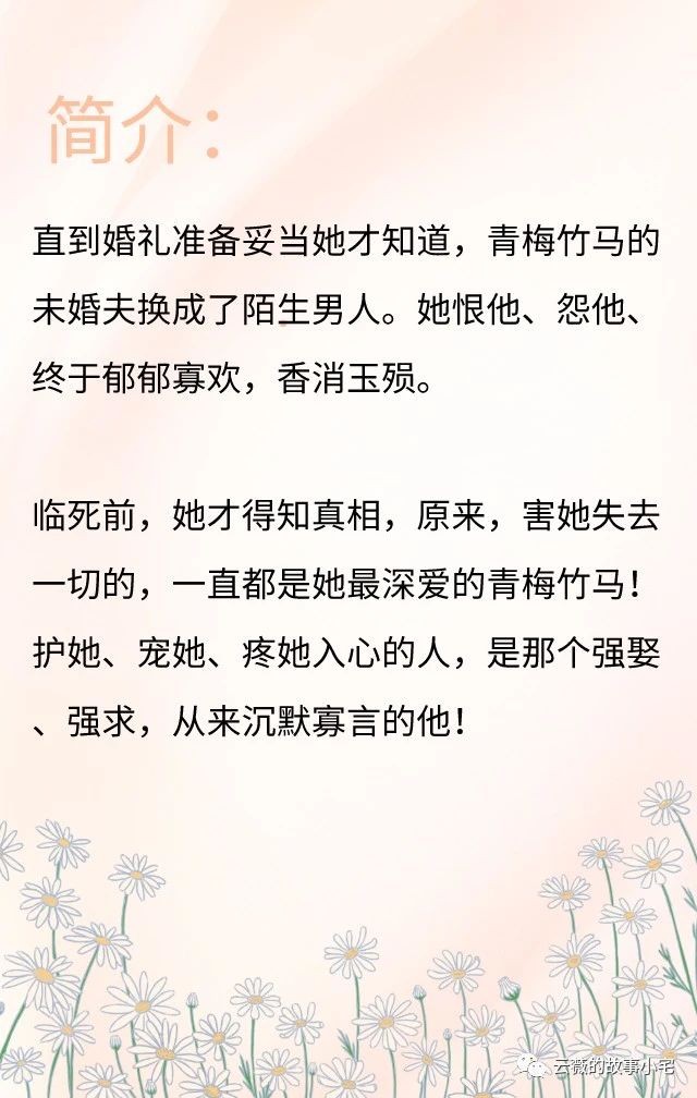 短评:男主在感情上略显笨拙,想对人好却一直用错了方法,导致女主上辈子一直怨他、恨他,直到死后才知道他一直默默为她做了很多。重生后当然是虐渣男,好好对那个一直默默守护她的人,却没想到把他宠成了一个醋王。