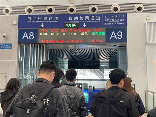 查看候车室屏幕信息:检票前,请务必留意候车室内显示各车次相关信息的大屏幕上标注的地标颜色。