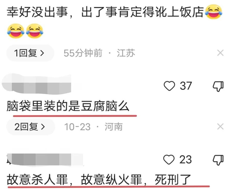 网友对此事纷纷指责,认为这种行为过于危险,如果火势蔓延导致受伤甚至可能面临刑事责任。
