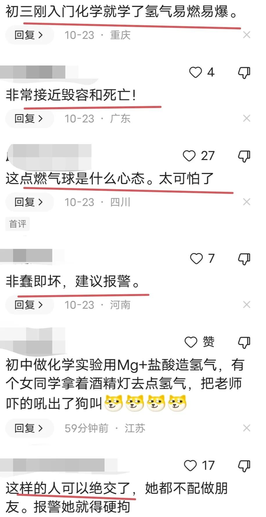 据报道,10月22日,重庆一位女子在饭店用餐时,手中的氢气球突然爆炸,险些烧到自己和同伴。