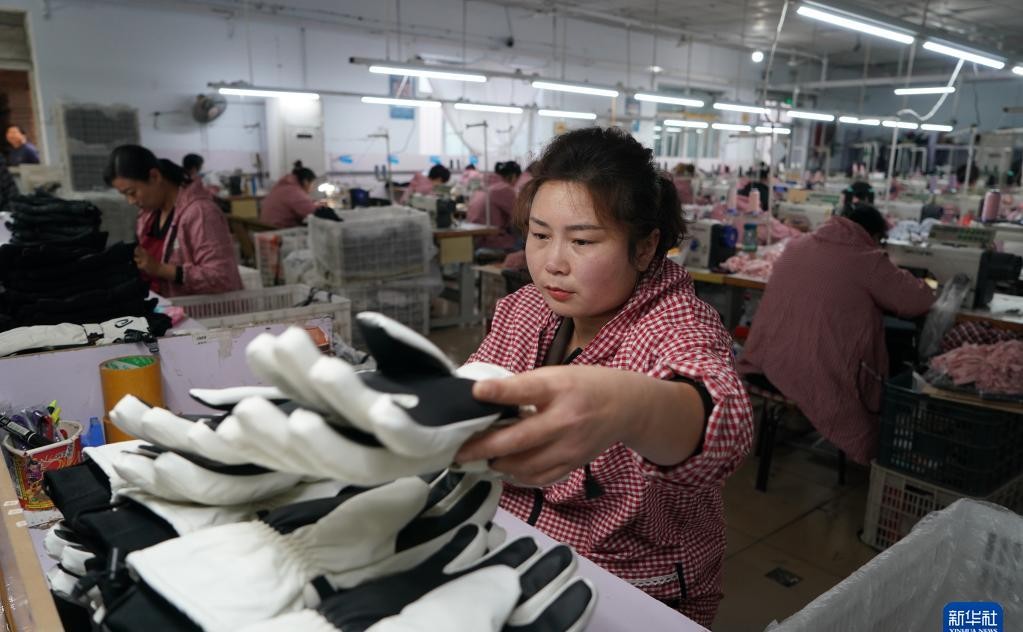 随着中国农产品的品质逐渐提高,越来越多的国家愿意从辛集市购买农产品,为当地农民带来了丰厚的收入。在辛集镇的安古城村,一家手套生产企业的工人们正在制作手套,并对产品质量进行检查。