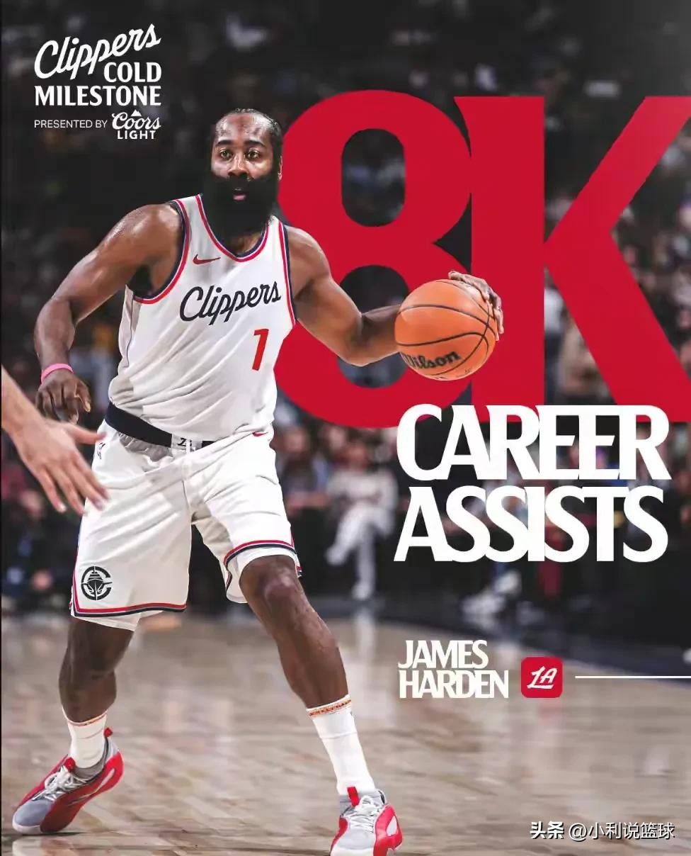 在今天快船的比赛中,哈登实现了一项伟大的里程碑,职业生涯总助攻数破8000个,成为NBA现役四人,仅次于保罗,詹姆斯和威少,同时在NBA历史上排名第13位。在哈登退役的时候,助攻破万不是问题。