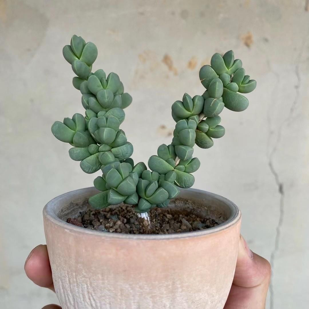 先说说如何养护吧?对于大部分花友来说,养护出来的鹿角海棠都是“群魔乱舞”状态,虽然生长状态茂盛,但是整体看来丝毫没有美感可言。也正是因为这个原因,不少花友在看到提根的鹿角海棠之后,都不禁赞叹,原来鹿角海棠也能这么漂亮啊。