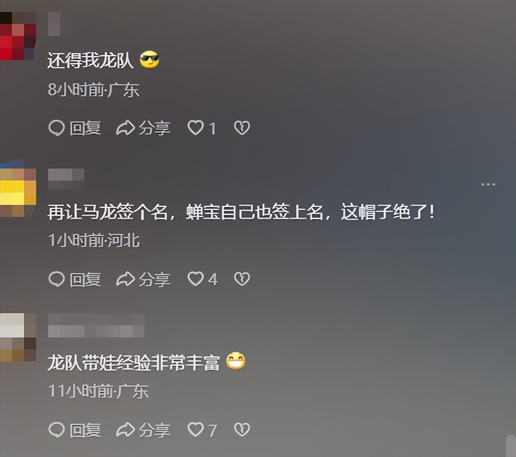 网友:要谢谢马龙哥哥哦。太可爱!