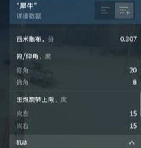 2.主炮旋转上限十分优异,达到了15°,这个小小的优势可以帮助我们在不用过多的转体就可以更好的击伤敌方,俯仰角则为8-20°,属于居中!