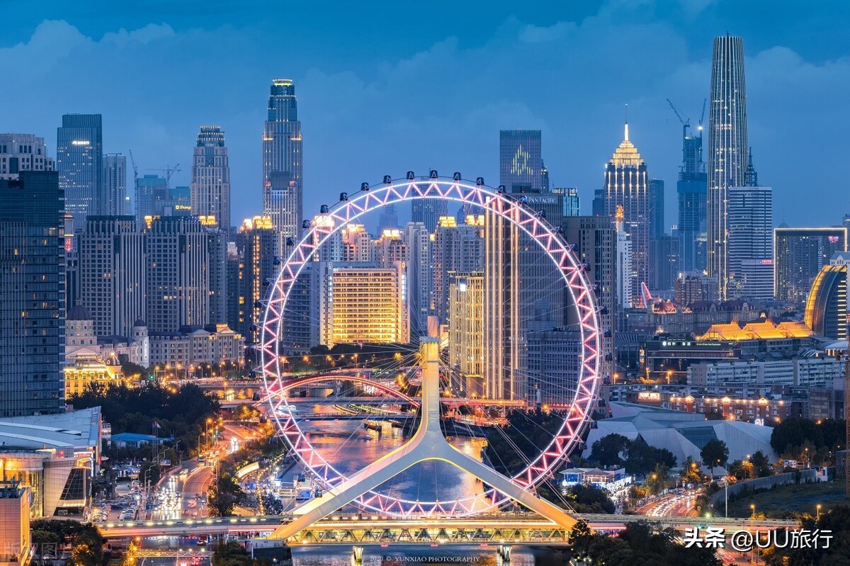 天津之眼,即天津永乐桥摩天轮,极具巧夺天工和奇思妙想。随着升高,脚下温柔的海河如平镜般让人安心,当到达最高点时,距离地面的高度可达120米左右,相当于35层楼的高度,能看到方圆40公里以内的景致,是名副其实的“天津之眼”。