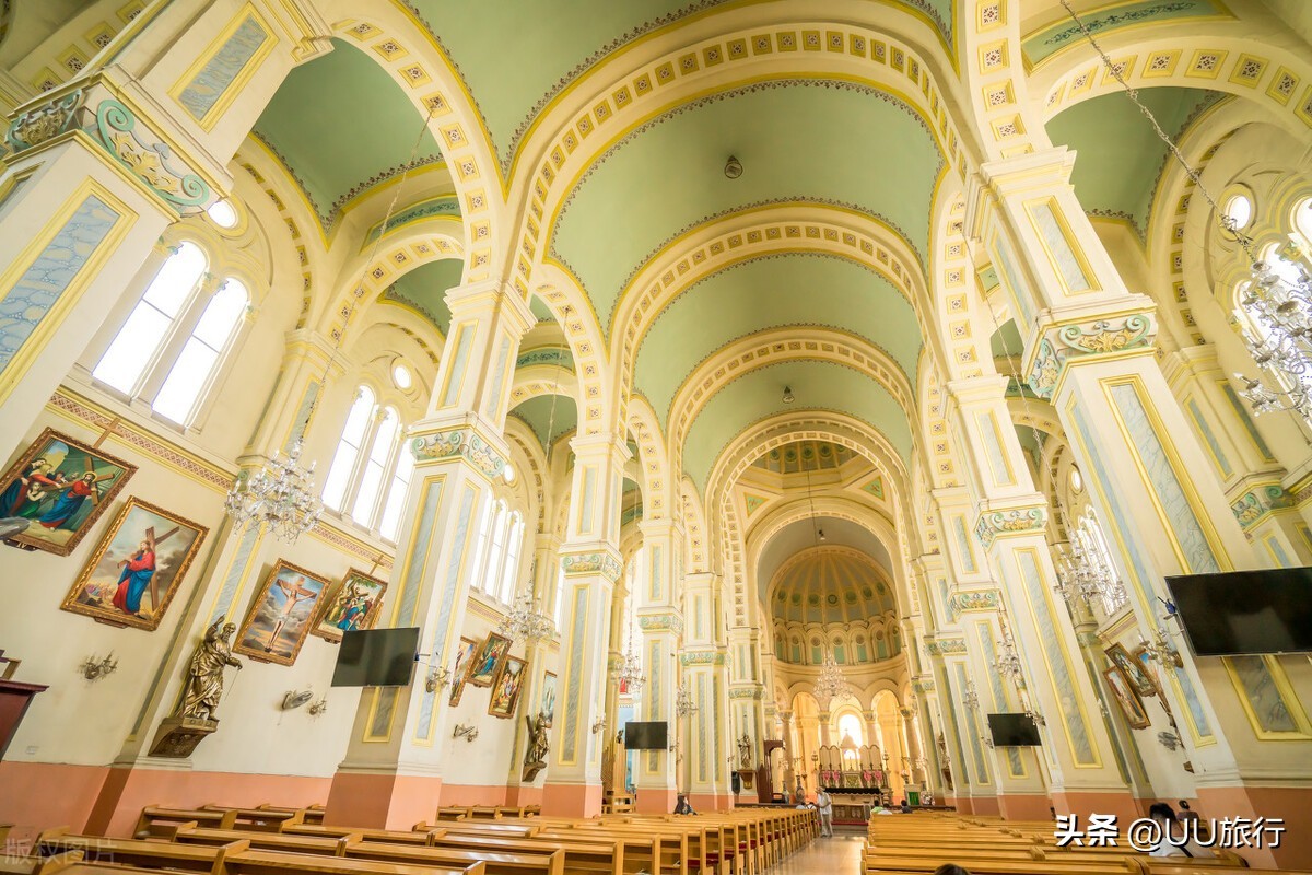 天津西开天主教堂,由法国传教士修建于1913年,很有西方天主教堂的美感。教堂内部的穹顶,高大威严。彩色玻璃上的画,单看这色彩的运用,线条的流畅,就让人驻足流连。