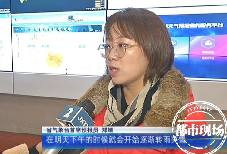 江西省气象台首席预报员郑婧:比如九江,在1月28日下午就会开始逐渐转雨夹雪,晚上开始逐渐转为固态降雪而且量级不会小,可能会有中到大雪的天气。这一次降雪天气的中心主要是在九江、宜春市的北部和景德镇的北部,局部地区可能会出现暴雪,积雪深度普遍在3到5厘米,最大局部山区积雪深度有可能会达到10厘米。