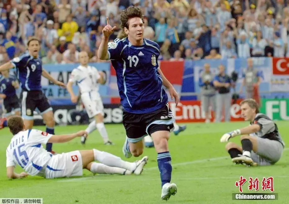 19岁的梅西打进了自己在世界杯的第一粒进球,