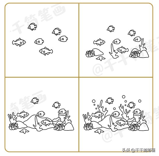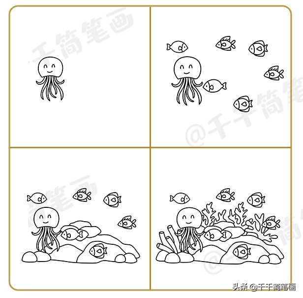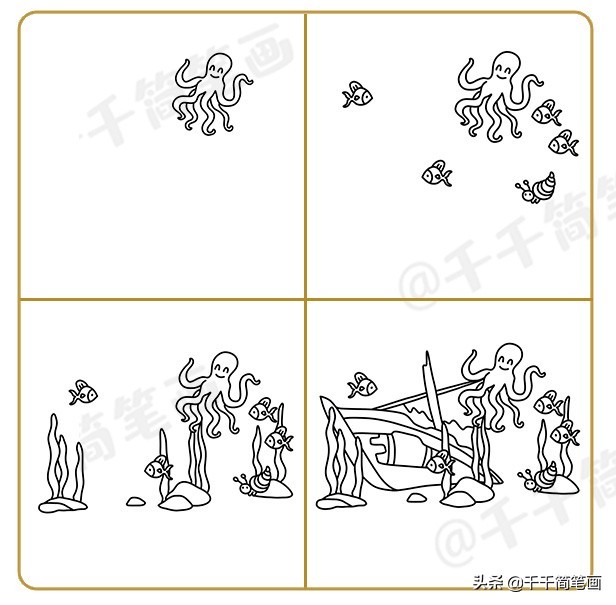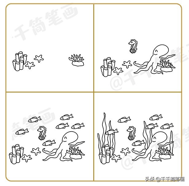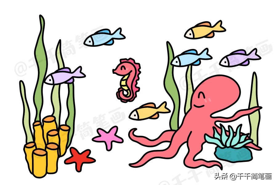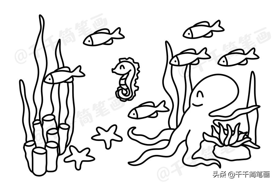 儿童简笔画海底世界步骤图和涂色模板,快为孩子收藏起来吧!小可爱们有其他想画的各种主题元素,都可以给千千留言呀,你们支持点赞会让千千更有动力持续更新呦(* ̄3 ̄)╭