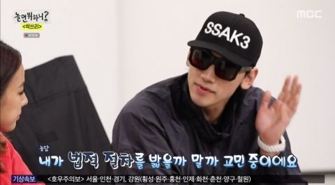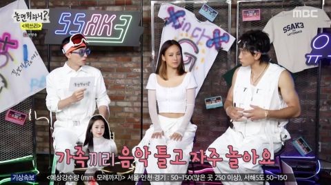 而听到聊到了金泰熙,之前与Rain闹过绯闻的李孝利也非常大方参与话题,说道:“最近泰熙拍了广告吗?”据悉是金泰熙之前拍了一个冰淇淋广告,但是广告有模仿Rain的歌曲《GANG》MV的嫌疑,因此在韩网上引发了争议,Rain也在节目中搞笑回应说:“我在考虑要不要走法律程序。”