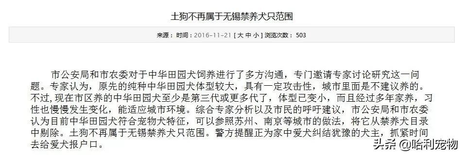 在查询中华田园犬是不是禁养犬的过程中,控主也看到了一些城市,不再把中华田园犬归属于禁养犬...