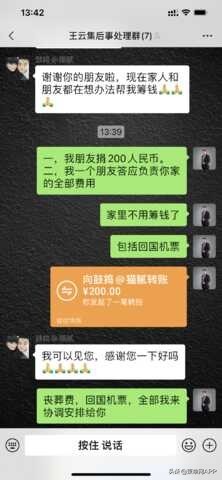 但就在下午,中柬商业协会秘书长陈岸在“王云集后事处理群”发来好消息,他的一位朋友表示愿意负责此次后事与回国所需全部费用。