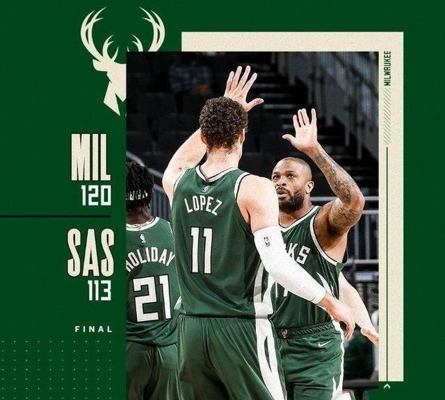 字母哥26+8+15 雄鹿七人得分上双120-113击败马刺取得六连胜