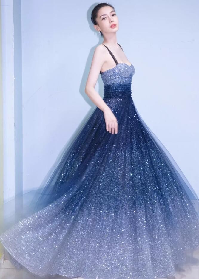 这样亮闪闪的裙子,没有几个女生不为之心动,一袭蓝色的星空长裙,光洁雪白的皮肤与闪亮的蓝色形成鲜明对比,整个人都亮了起来,惊艳到让人过目不忘。