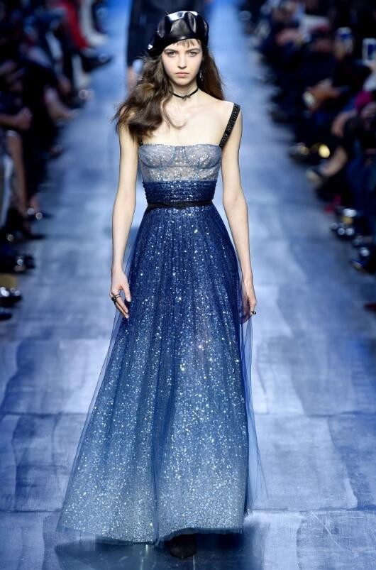 Dior秀场上,很多人都被这位身穿夜蓝纱裙的小仙女惊艳到了,这条星空裙想必大家都不会感到陌生吧!杨颖baby跟韩国秀智都穿过同一条,都没有Maria Clara穿得美。