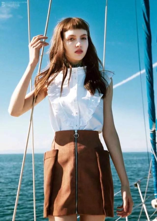 精致的容颜与独特的气质,穿搭也是相当的少女,身穿白色上衣搭配棕色短裤,把衣角全部塞进裤子里很显腿长。