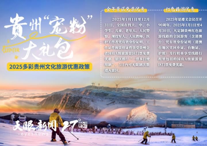 记者从多场文旅新闻发布会上了解到,这个冬天贵州将充分发挥贵州秋冬季独特的自然和人文资源,依托支支串飞、小车小团、贵南冬季阳光休闲旅游带、民俗节庆、温泉康养、南国滑雪等六类特色产品,结合贵州景区景点和“村超”“村BA”、路边音乐会等精彩纷呈的文体活动,诚邀广大游客前来参与体验,度假过年。同时在2025年,面向“一老一小”、人民警察、现役军人、人民教师、医护工作者和学生等群体推出一系列文旅优惠活动。