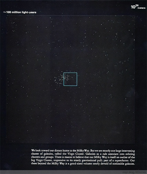 1亿光年 图片中央有一群“星星”聚集在一起,它们其实叫做室女座星系群