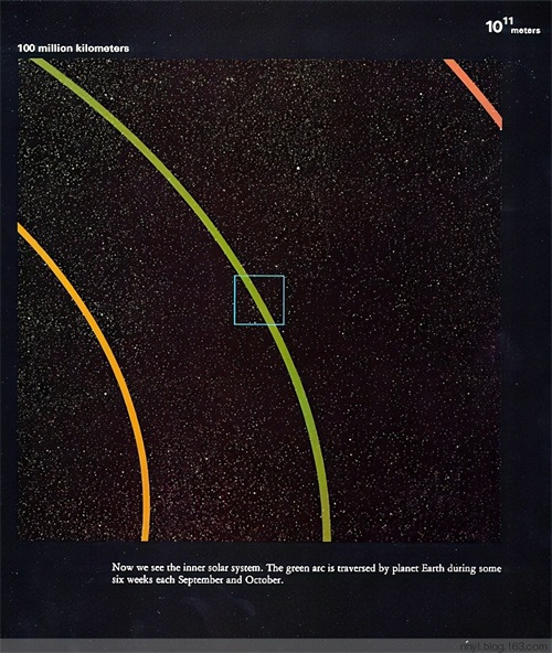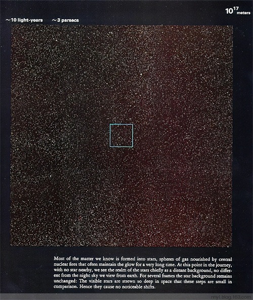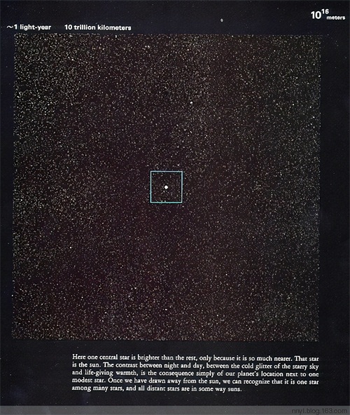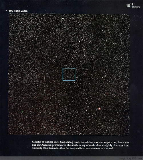 1光年(10兆千米) 这幅视图中央那个星球比其他的都亮,大家一定也猜到了,这就是我们的太阳。