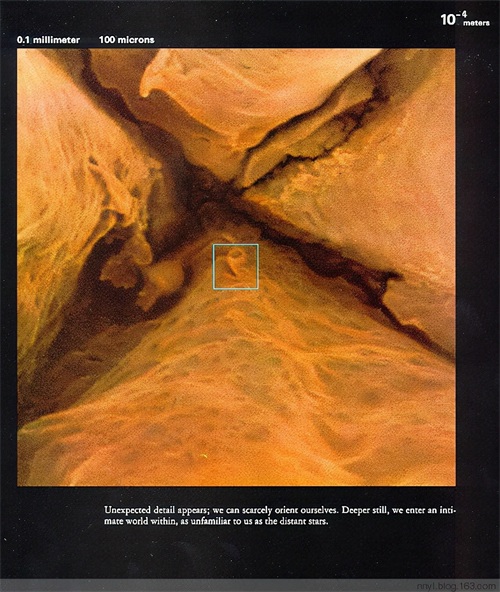 现在我们来分享显微镜下的世界。不可思议的景象出现了,我们永远也想不到我们的皮肤可以像峡谷一样沟壑幽深。眼前的景象如遥远的星球一样神秘陌生。