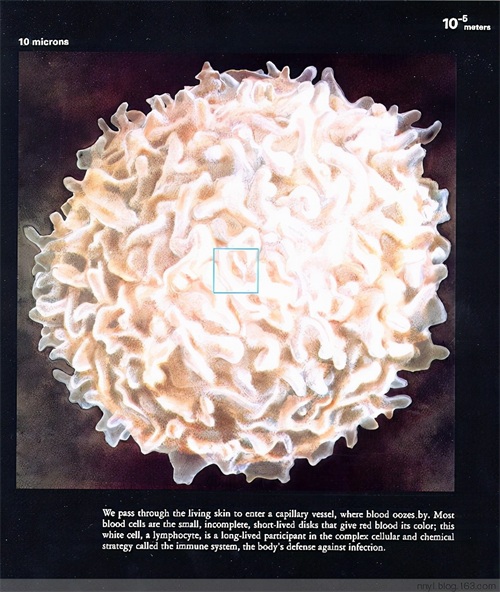 穿过皮肤,进入血液流淌的毛细血管。这个白细胞是生存期长的淋巴细胞,它是人类免疫系统的一部分。免疫系统中包含各种复杂的细胞以及化学成分,是机体抵御感染的机制。