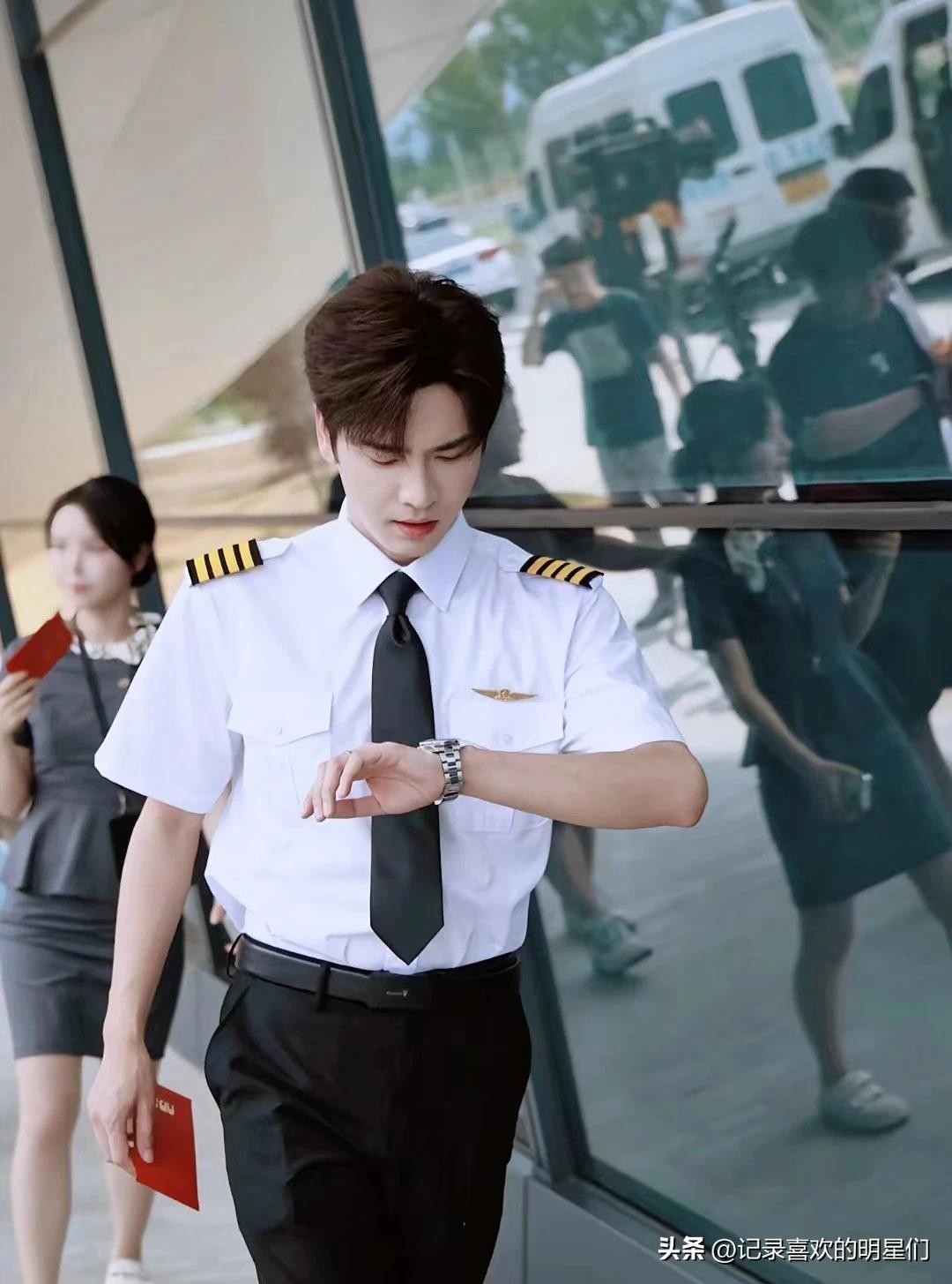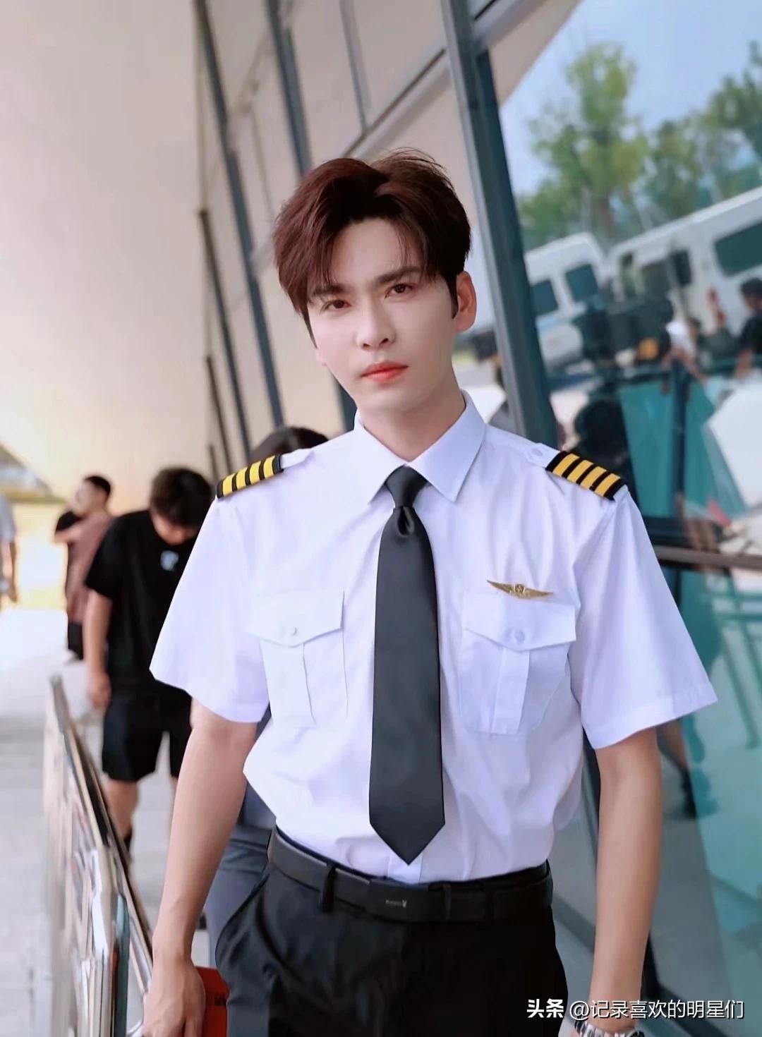还有王奕然这一身装扮,真精神,太帅了吧,这是机长服吧,男人味十足。