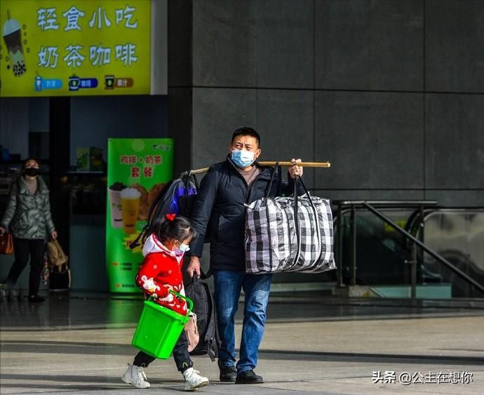 这是在回家过年的路上,眼神里充满了喜悦和激动。