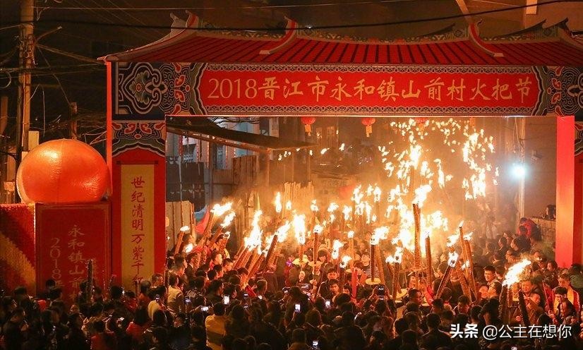这个村的村民手持火把来庆祝年的存在,就是拿着火把,围绕着村子转圈。