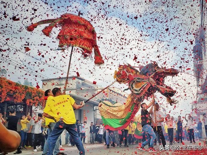 这些村民正在舞龙灯,来庆祝年,各个地方都在用自己的文化来庆祝年。
