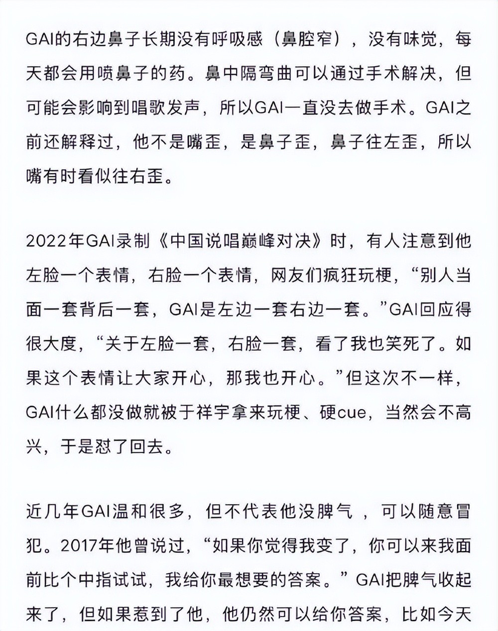 脱口秀演员调侃歌手GAI嘴歪,GAI发文怒怼,回应嘴歪是生病原因