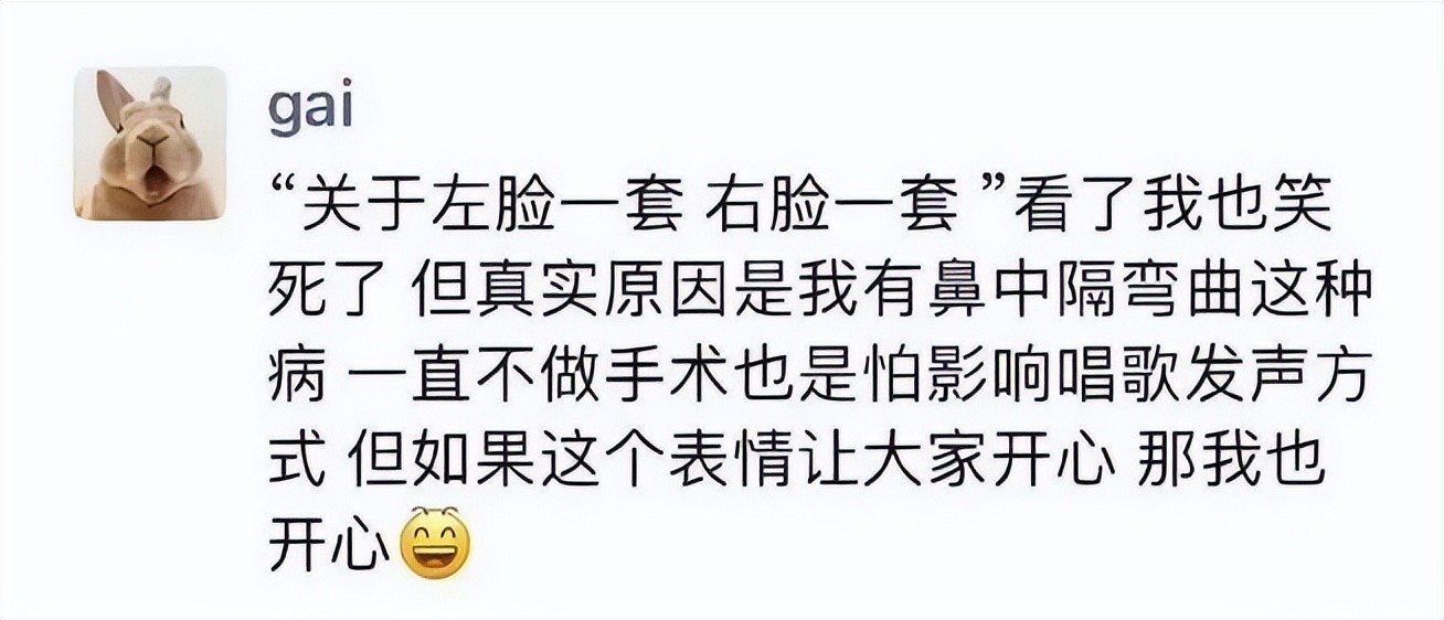 可能有些小伙伴不知道,GAI嘴歪是因为鼻中隔歪曲,这本来就是人家身体上的一个小状况,也算是个小痛处吧。