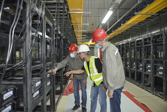 2021年5月11日廊坊公司冀电入云服务队员在蜀成数据中心项目机房开展技术指导。 邹明摄