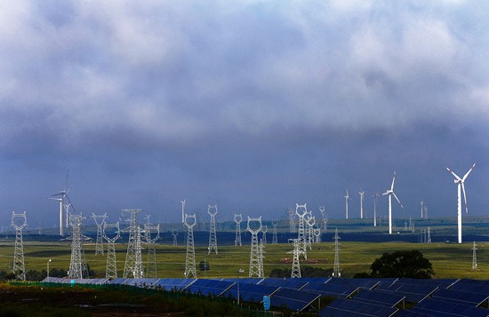 进入5月,张北草原,绿意盎然。与无边无际的草原一起铺陈开来的是高大的白色风车,星罗棋布,连绵不绝。随着风车缓缓转动,巨量的风能转化为电能。通过电网,这些能量不断输送到北京等地。